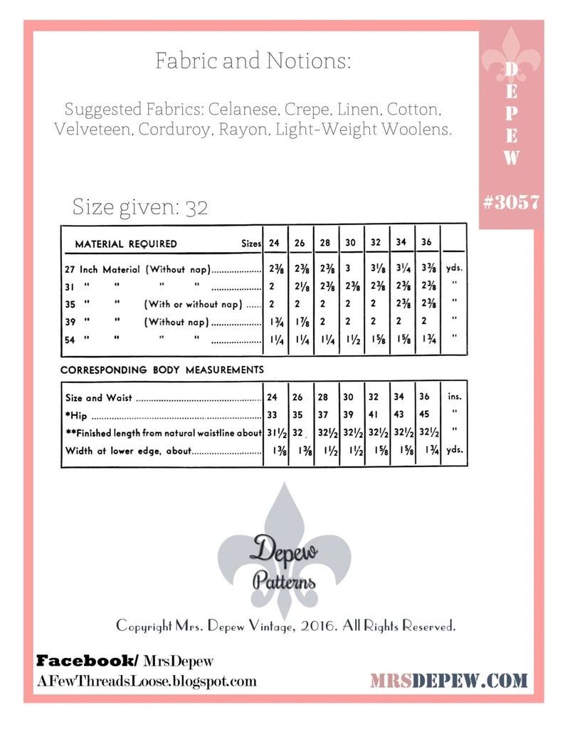 Vintage Sewing Pattern Ladies 1930s Easy To Sew Skirt 3057 Instant Download